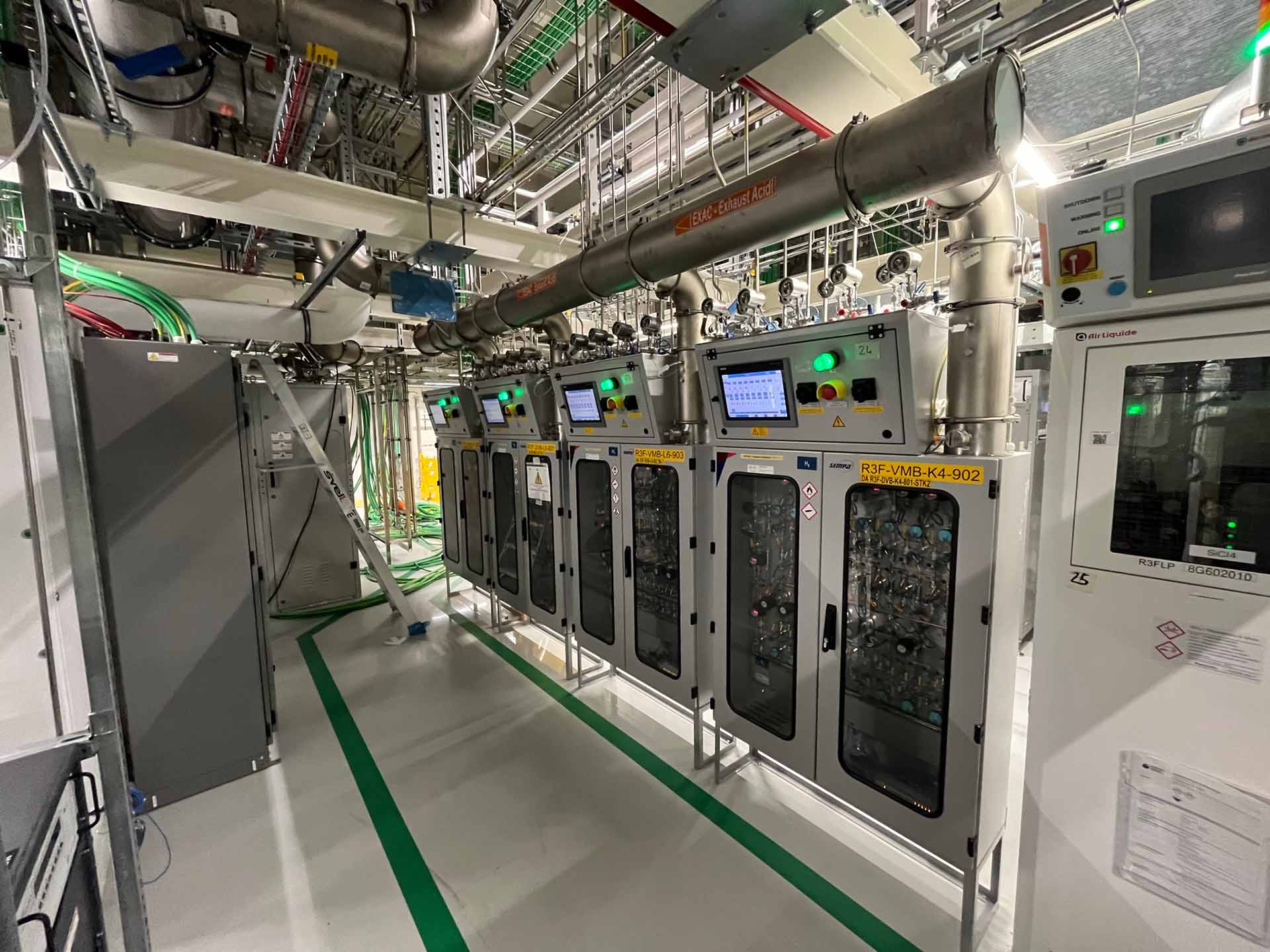 Home › Projects › ST Agrate – Hook Up ST Agrate – Hook Up Client: STMicroelectronics S.r.l. Date: 2021 – Ongoing ConstructionAdvanced Technologies Equans Process Solutions contributed to the set-up of the new clean room at the R3 department, located at the ST site in Agrate, by providing its know-how of project management and construction activities aimed at realizing the hook-up of equipment used in the various stages of the production process. Mechanical piping connections Gas connections Mechanical and electrical connections Electrical panels and distribution Connections in plastic material Utilities connections Key facts of the project The clean room hook-up project was developed in three distinct work phases: Pilot phase; HBO (Half Build Out) phase A and B; FBO phase (Full Build Out). UTILITIES Bulk gases (N2uhp / Aruhp /Heuhp / O2uhp. Standard gas (CDA/O2-Scr/ N2S) Specilaty Gas Single envelope (inerts). Specilaty Gas Double envelope (Toxic,Flammable,Corrosive) Liquid Fluid (PCW, SW, CH4 TPU, UPW/DIW, VACUUM) Key numbers of the project 60 hook-ups completed 50 specialized resources 3 years 20 Value (in mio €) Related projects Construction Data Center Data4 Campus – Construction Equans Process Solutions realized the mechanical and fire-fighting infrastructure of the site and the mechanical and air-conditioning systems. Read more Construction Pharma BAYER GMP-UP Equans Process Solutions contributed to renovating the production site to align with GMP Guidelines and to minimize production stops. Read more Construction Pharma LLIn Facility Project Equans Process Solutions developed new hydraulic systems to power the equipment and HVAC for the latest production department. Read more All Projects
